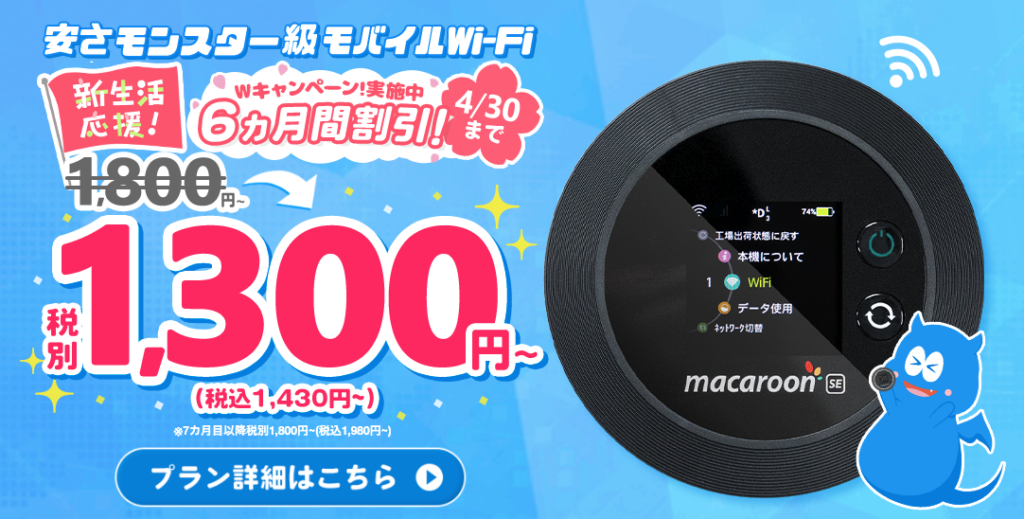 無制限のポケット型WiFiは月3,000円台後半〜4,000円台後半が中心と考えておけば大きくズレません。